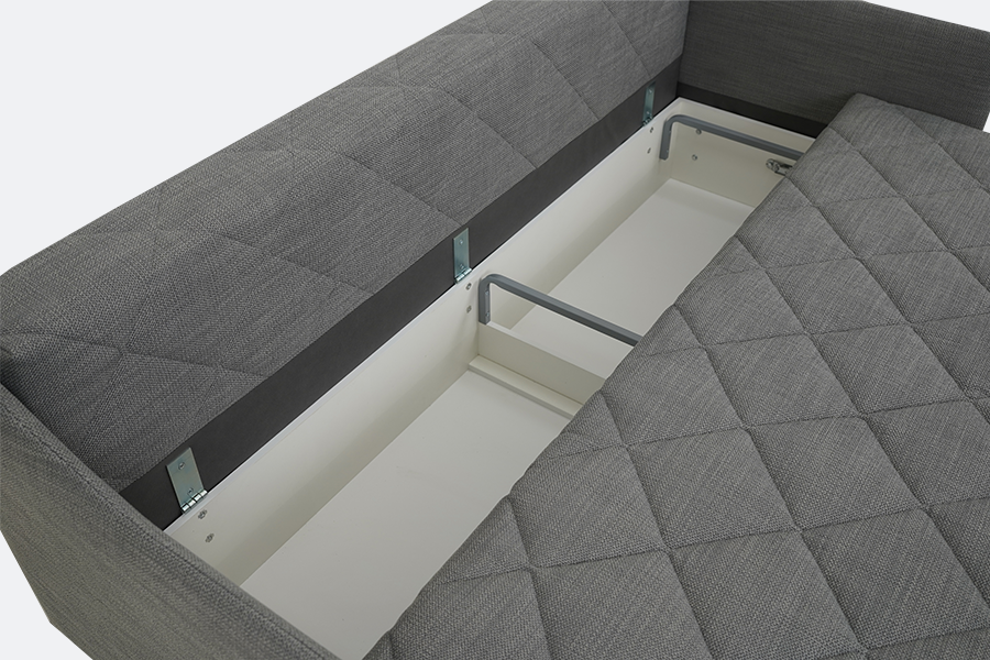 Сдвижная еврокнижка имеет два положения для комфортного и полноценного отдыха: стандартное и лаунж. В последнем варианте сиденье дивана легко сдвигается вперёд, формируя удобную глубокую посадку.