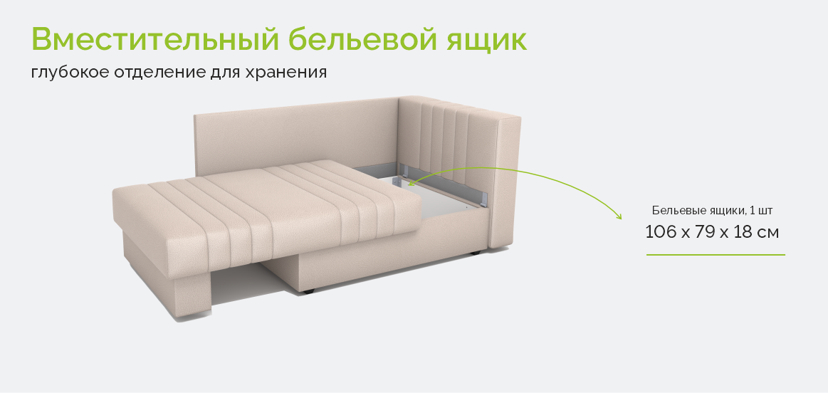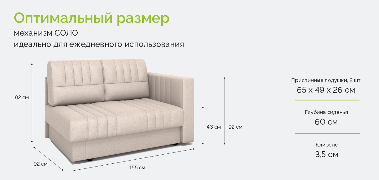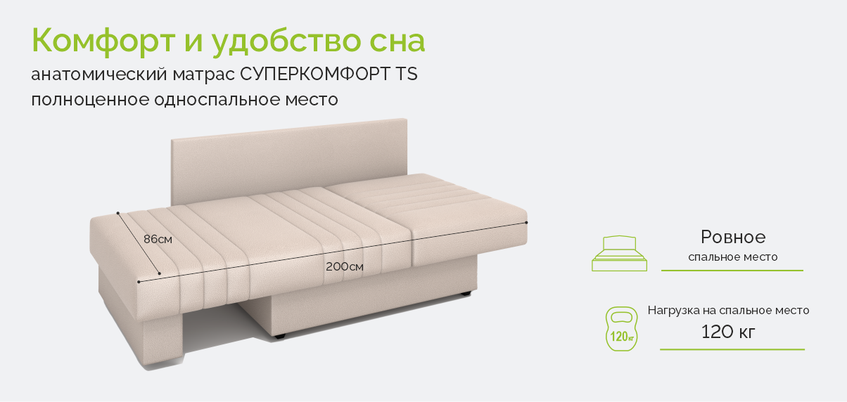 • Механизм трансформации – соло. Легкое и бесшумное разложение в положение в односпальную кровать.