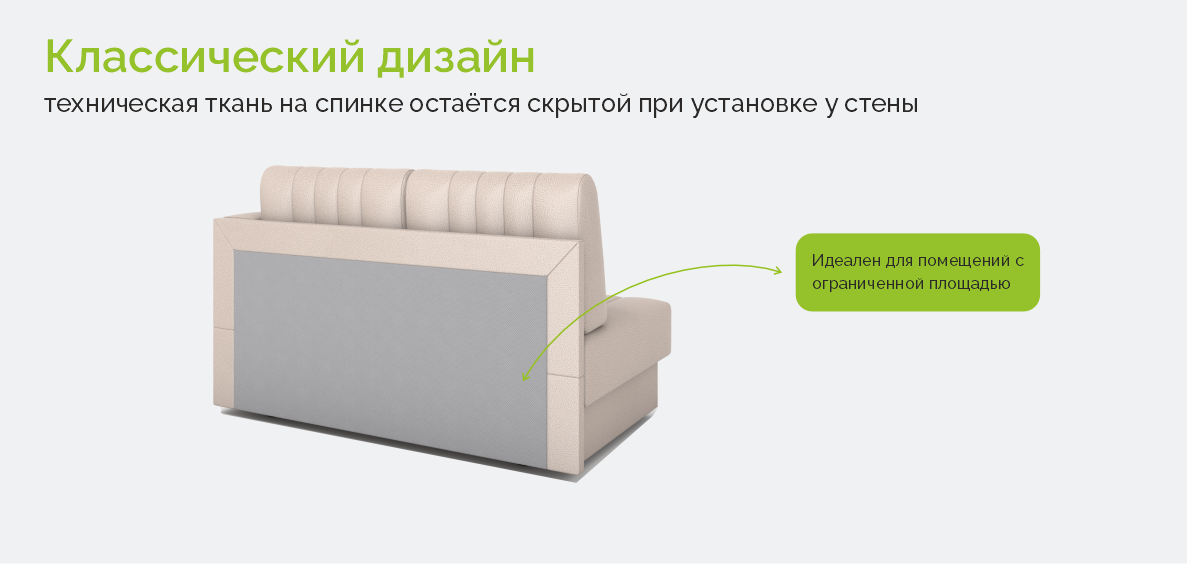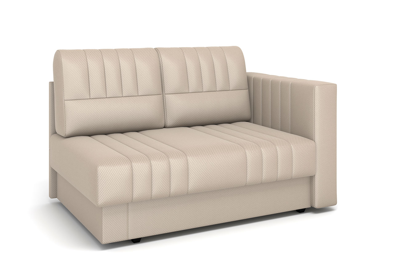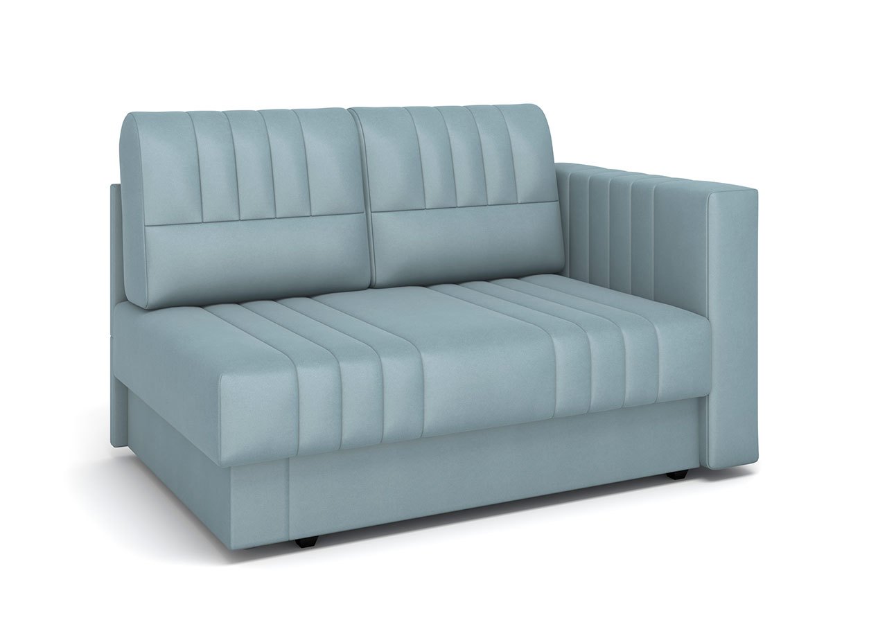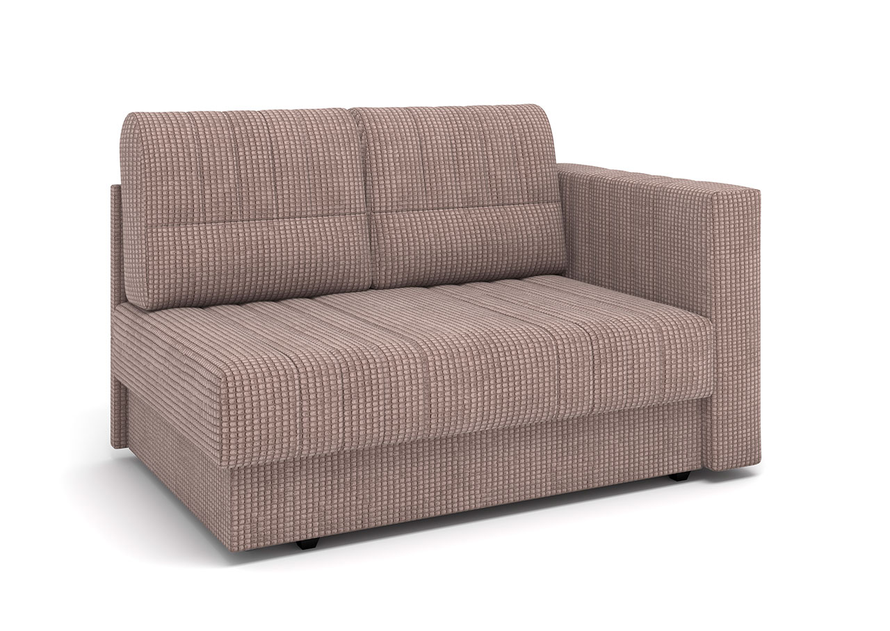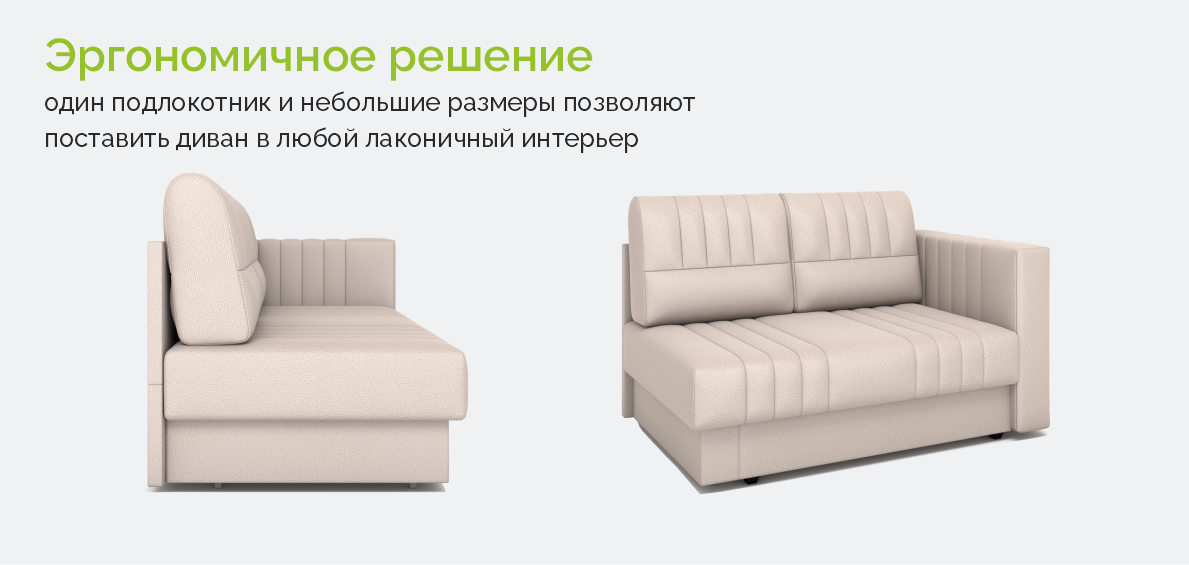 • Один подлокотник и эргономичные размеры позволяют поставить диван в любой лаконичный интерьер. Подлокотник не универсальный