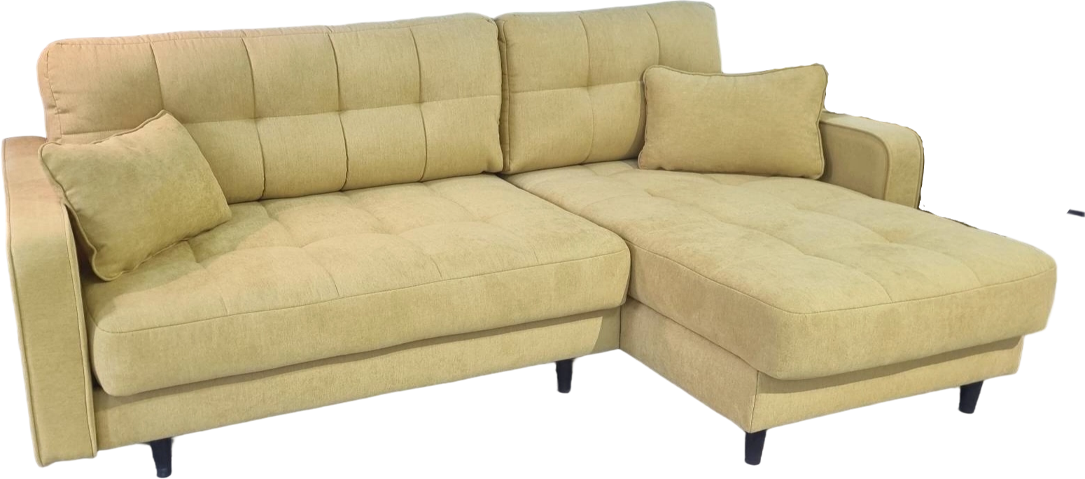 Угол - реверсный, имеются легкие запыления на ткани, диван требует сборку.